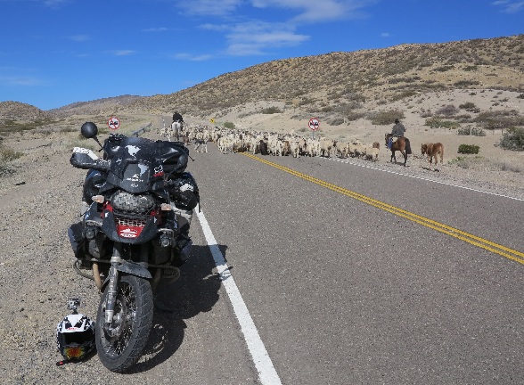 Arrivé je trouve le garage Yamaha qui n'ouvre qu'à quinze heures, donc j'attends deux heures avant de trouver un Karoo de Metzeler... On monte tout cela et je repars avêc mon nouveau pneu pour El Calafate... Il se fait tard et je m'arrête dans un petit bled dénommé Las Horquetas pour la nuit. Je rencontre 2 gauchos qui me déconseille de partir sur la Ruta 40, ils me disent qu'il y a beaucoup trop de vent, et que la température chute et qu'il va neiger...Sur ces bons conseils je vais me coucher.