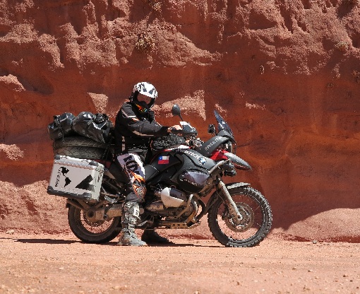 fantastique, je pense que c'est la plus belle route de toute ma carrière que j'ai immortalisé sur la Go-Pro (caméra sur casque).... Ce pneu c'est l'extase.... Avant d'arriver à mon but, je me fais arrêter par la police de la Province de Rioja, au milieu d'une ligne droite de 20 km. Ils me demandent si je voyage seul ... Si j'ai pas peur de me fairea agresser?... Si je portes une arme ?... C'est assez rassurant.... C'est clair que ces contrées sont extrêmement peu gréquentée...Es ce de l'intimidation, ou ils aiment les histoires. J' arrive à 18.30h à Guandacol ou le premier Hôtel est complet, le patron est aussi sympa qu'une porte de grange (expression du Pays-d'Enhaut). Je continue et je vois un panneau 5km Auberge San Bernardo, j'y arrive personne mais deux berger allemand plein d' appétit... Je sonne et là une dame très sympa m' ouvre le portail pour passer la nuit... Elle s'appelle Elvira et me fait comprendre que son mari s'appelle Rheinhart et qu'il est allemand... Donc je passe une soirée super sympa en compagnie de ce couple qui vit depuis 40 ans en argentine...