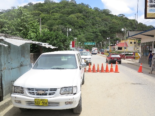 Ce 26 avril, je quitte le centre de Piura qui set une ville très belle avec environ quinze personnes qui attendent mon départ, je sors difficilement de la ville pour rejoindre la route pour la frontière. En deux heures, je quitte la zone désertique pour entrer dans un environnement très vert et très dense... Je gravi plusieurs cols et j'arrive à la frontière de Macana et c'est là que ce termine mon périple péruvien sans aucun problème majeur....Les formalités de douane se passe très bien.Une fois entré dans l' Equateur je suis surpris par la température qui avoisine les 12 degrés, donc je m'arrête et je remets des couches...Et je regarde mon altimètre 3250 m, tout s'explique... Je retrouve la topographie du Pérou avec une végetation très dense...Par contre en altitude, je suis confronté au brouillard très dense... Ce qui me freine beaucoup....Après cette longue journée à Cuenca de nuit, une très belle ville ou je dors dans le centre ville... Une grosse journée...