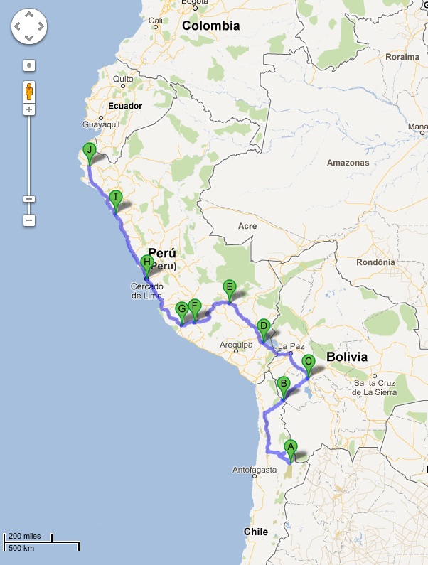 Ce 18 avril, je quitte Oruro, pour la Paz, la route est magnifique, est c'est à la sortie d'un péage qu'un policier corrompu me fais croire que j'étais en excès de vitesse... Un peu agacer je lui laisse 20 francs et je continue ma route... je suis en avance sur mon planning et j'arrive à La Paz... C'est juste incroyable, une pollution terrible, du traffic, des gens au bord de la route, des chiens, des tricycles, des vélos, c'est de la folie... Je décide de passer cette ville au plus vite et je décide de rejoindre la frontière péruvienne à Désaguadero. En arrivant dans cette petite ville on a l'impression d'être en asie, des vélos partout, des touc-touc (tricycle à trois roues motorisé) , des gens qui vendent des fruits et des légumes, c'est juste incroyable...Je quitte la Bolivie et je passe l'immigration péruvienne très corrompue, mais très sympa...Et c'est là que j'atteinds le bord du lac le plus haut du monde le lac Titicaca à 3810m d'altitude... L'endroit est magnifique est comme dans un rêve je trouve un hôtel surplombant le lac...C'est du bonheur...