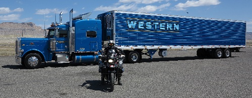On est le 24 mai, je quitte Moab, petite ville très touristique et un couple de Zurich avec qui j'ai mangé Thailandais le soir précedent Alain et Murielle... Comme prévu, je décide de visiter le Arches National Park renommé pour ces voûtes naturelles...La réserve est magnifique est le paysage me rappelle la visite du jour d'avant... Après trois heures je reprends le Cap de Salt Lake city...En route je m'arrête dans une station d'essence et un routier m'interpelle, il a cru que j'étais un présentateur de NTV qui fais des reportages de moto, pas de chance pour lui mais une bonne photo de son Truck et moi... Vu mon avance, je passe par la montagne et la température tombe à moins de 10 degrés, c'est normal au col l'altitude est près de 2500m et on y vois des taches de neige....Par contre l'endroit est magnifique, il ressemble étrangement au fond de l'hongrin pour ceux qui connaissent... J'arrive à 17 heures à Salt Lake city... Et j'organise le grand service de ma moto qui se fera samedi...
