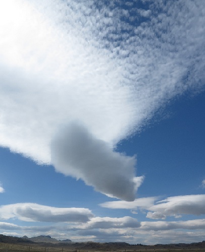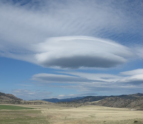 Ce 30 mai, c'est reparti, je quitte Salt Lake pour Great Falls, 930 km dans le Montana, la route est magnifique, la contrée est très similaire au Texas, beaucoup de champ de blé, bordé par la chaîne des rocheuses...Cette journée restera dans ma mémoire pour ces nuages lenticulaires, qui se dessine à l'infini...