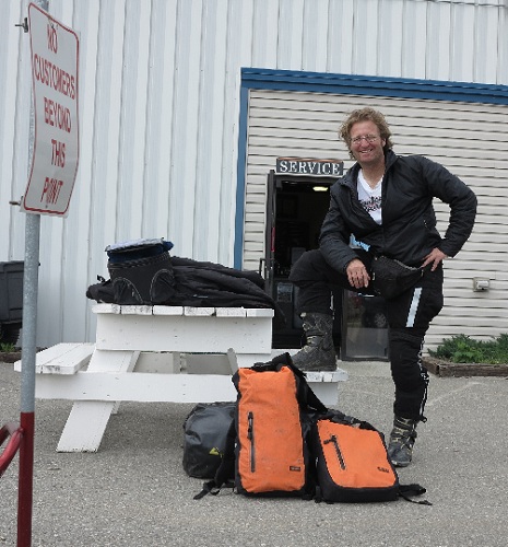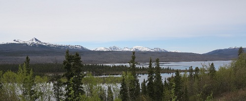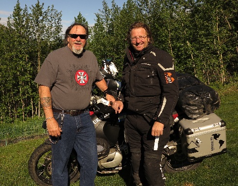 Ce 2 juin, je suis un peu anxieux, mais tout se passe normalement la moto démarre ce qui me rassure... Je prends la route avec la certitude que je vais être accompagné par la pluie, après 10 minutes cela commence et je roule en direction de Fort Nelson, la route est facile et je décide de faire des kilomètres pour passer ce front nuageux qui est annoncé pour plus de trois jours...Les conditions sont difficiles, mais la faune est plus que présente...J'ai vu quatre ours solitaire, deux élans femelle, cinq bisons male solitaire et une horde de dix bisons et un magnifique élan male dans un étang, une vision extraordinaire... Après 980 km de route j'atteinds Watson Lake à la frontière du Yukon...