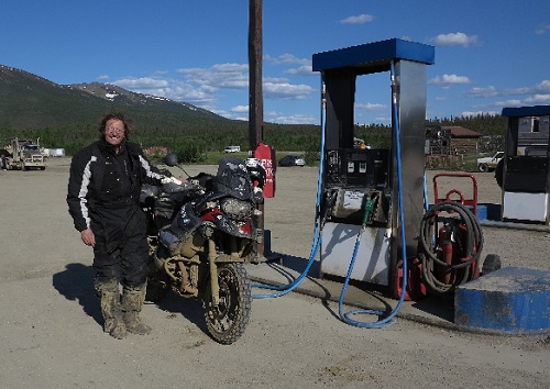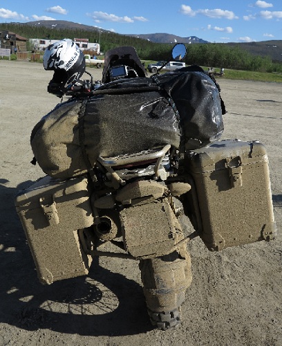 Le 5 juin, je quite Fairbanks après le changement de deux pneus neufs continental Enduro et je prends la route avec la pluie sur la Dalton Highway, la route est une piste plutôt terreuse qui est très grasse du à cette pluie... je suis super motivé et j'ai passé en mode sport... C'est pour cette raison que cette étape ressemble plus à une course qu'à une croisière...J'ai pris un plaisir fou de mettre un peu les gaz et en fin de journée je suis arrivé à Coldfoot avec le soleil, crépis de boue... J'ai pris
